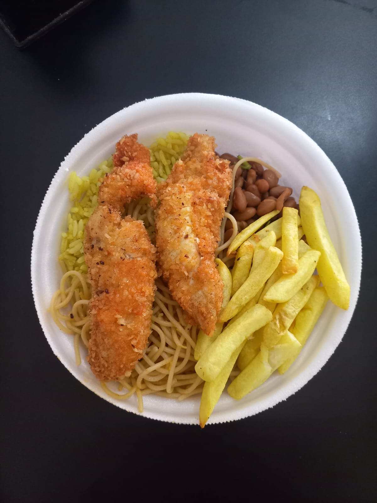 Com batata e fritas e refrigerante